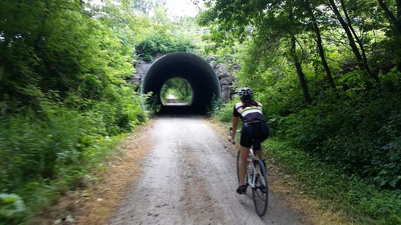 After visiting with my daughter for a few days, we set off from our hotel on the Capital City Trail around Lake Monona. The trail didn’t last long and we eventually ended up on rural roads for several miles before reaching the Glacial Drumlin State Trail. The Glacial Drumlin State Trail is a 52-mile trail which is paved for only 13 miles. The majority of the trail is crushed stone which was hard-packed, smooth, and perfect for riding.