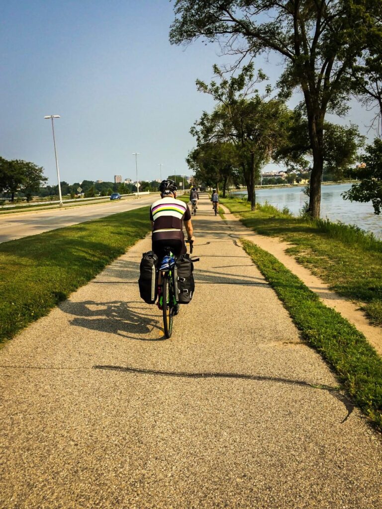 I had already decided to visit my daughter in Madison, Wisconsin over Fourth of July weekend, with my girlfriend, Jodi. I talked with Jodi about incorporating a bicycle adventure into our trip and after a little online research, learned that we could ride our bikes almost exclusively on trails to travel from Madison to Milwaukee. From there, it was an easy boat ride across Lake Michigan to Muskegon.