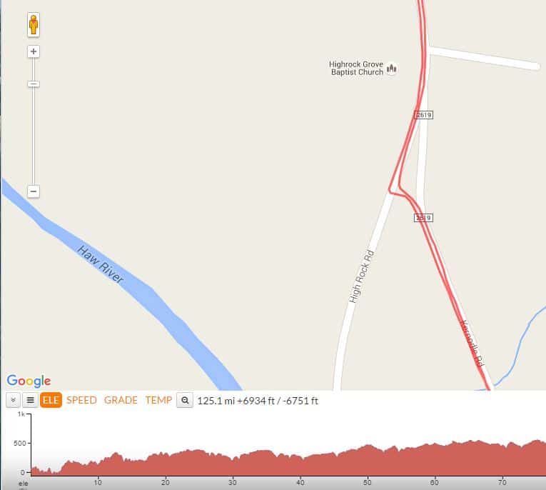 The illustration above shows a screen shot of our out-and-back GPS track last weekend. Have a look at Road 2619. It appears to be a shortcut of the left turn we took off High Rock Road. In fact, that shortcut is no longer there.
