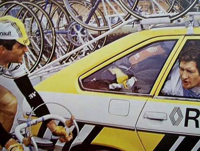 Although Laurent Fignon (above left) is our favorite rider; we are looking more for the temperament displayed in young LeMond (above right). M. Fignon was brilliant and exciting, he was also temperamental and vain.