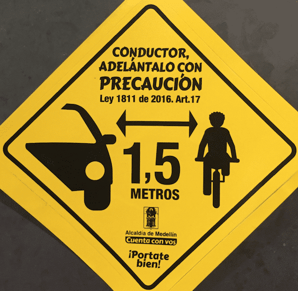 While not based on any hard data, my observation and experience in Medellín was that law enforcement officers were also not yet focused on enforcement of the 1.5 meters law and other laws designed to protect bicyclists in the roadway. It was very common to see large buses and trucks passing and riding alongside bicycle riders with less than a foot to spare. That said, because of the number of bicycles, motorcycles, and scooters on Medellín’s roadways, drivers appeared to be generally more cognizant of bicycles on the roadway and had a better appreciation of their speed and place in the flow of traffic. Again, without any hard data to go by, I would suspect that right hooks and improper turns in front of bicycle riders are less common in Medellín than they are in New York, as drivers of automobiles, buses, and trucks seem to expect and generally respect two-wheeled traffic.