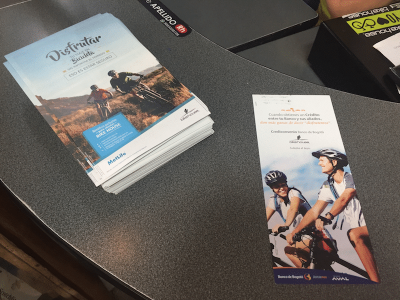 Efforts by the private sector to get more people on bikes are also apparent in Medellín, which was a positive indication that the softer provisions of Law 1811, which encourage, but don’t require, private businesses to support the national government’s prioritization of the bicycle, were being taken seriously. While at Bike House, one of Medellín’s many bicycle shops, we saw pamphlets and flyers from various banks and insurance companies encouraging people to buy and use bikes by offering special financing and insurance for bike riders. In addition, shops that sell motorcycles and mopeds also sell and promote e-bikes, and financing arrangements for the purchase of e-bikes are also available.