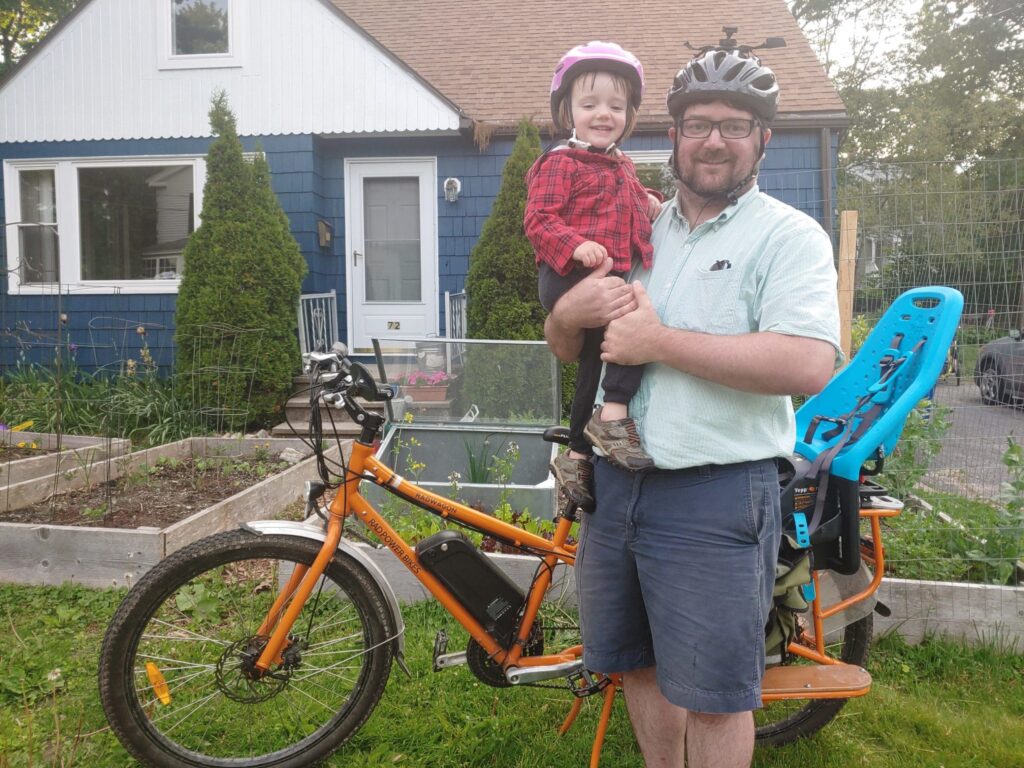In 2018, Legislator Deane Rykerson of Kittery, who is an avid bicycle rider and a tireless advocate for the environment, recognized the value of e-bikes and the need for more clarity and protections in the law surrounding e-bikes. He drafted and submitted LD 1222, An Act Regarding Electric Bikes, with the help of the Bicycle Coalition of Maine, People for Bikes, the Bicycle Products Suppliers Association, and Environmental Planner Damon Yakovleff, who is shown above with his daughter and their e-bike. Input on the legislation was also sought from e-bike riders, road riders, the mountain biking community, Maine attorneys, law enforcement officers, land use planners and bike shop owners.