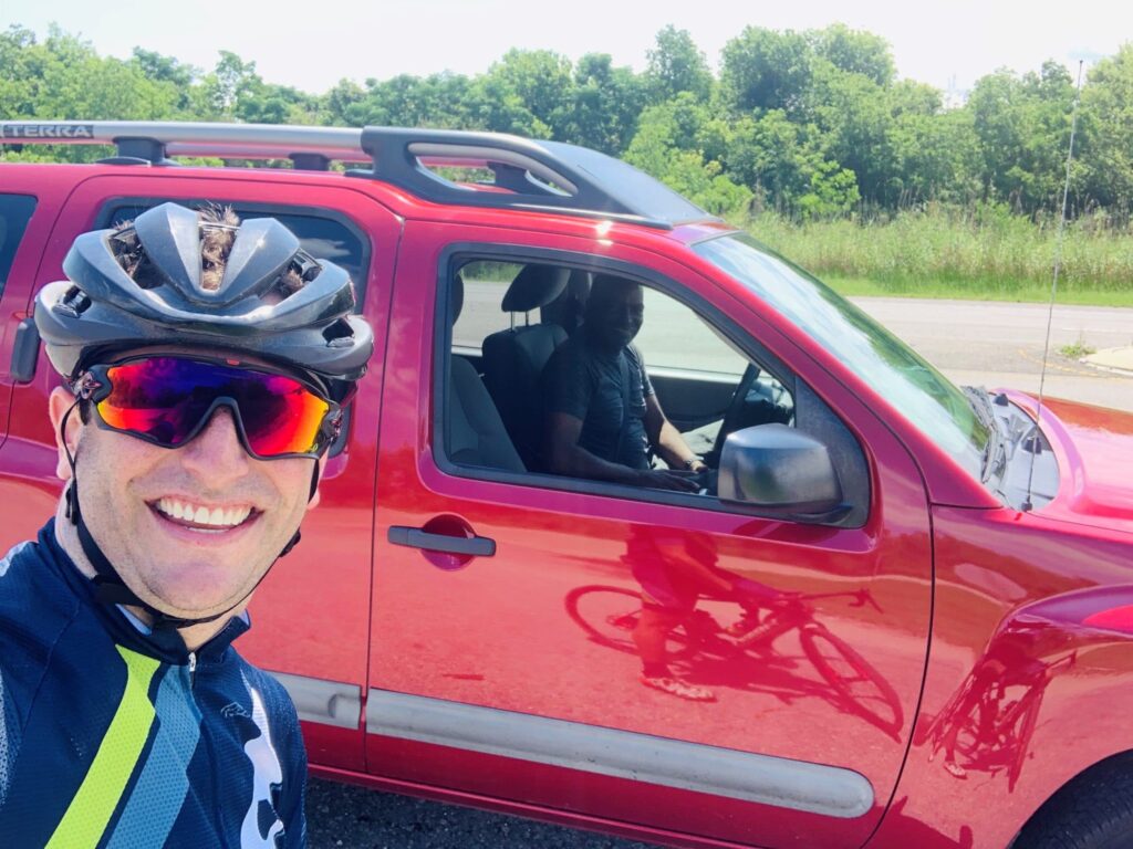 At the bottom, I pull over and David follows. He rolls down his window and I thank him for literally saving my life. He seems genuinely happy to have done some good. He also seems happy that I didn’t get sweat and bike grease all over his interior. Mutual 5-star reviews are exchanged. Everybody wins.