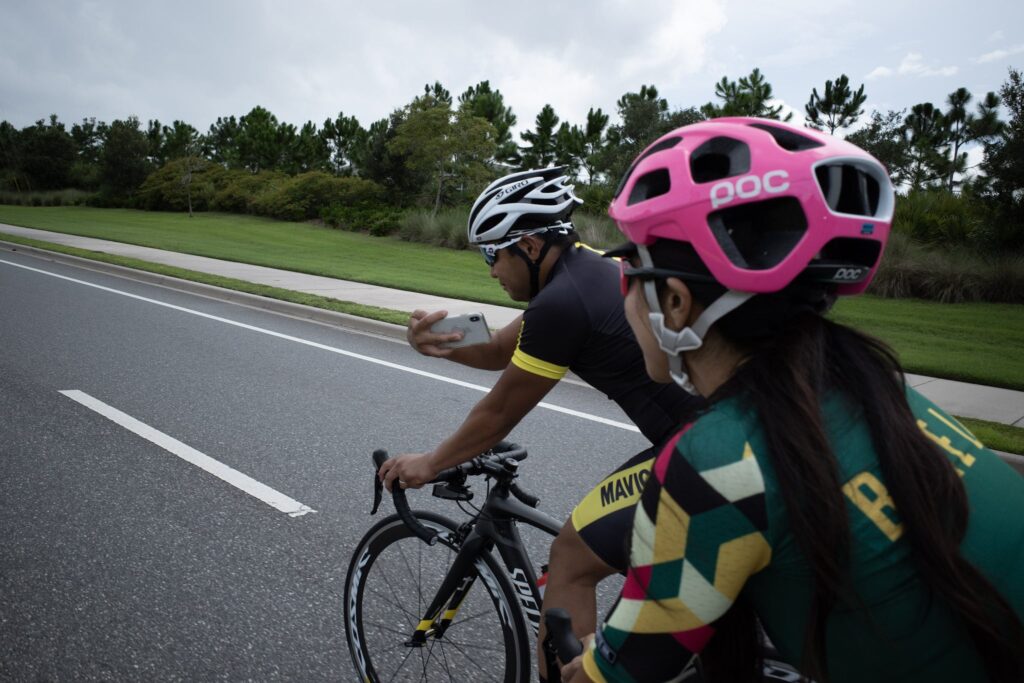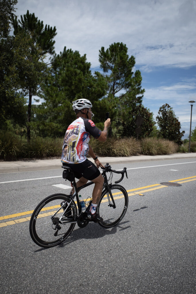 I am never comfortable taking a one-handed photo with my phone while riding. And neither is Daniel: