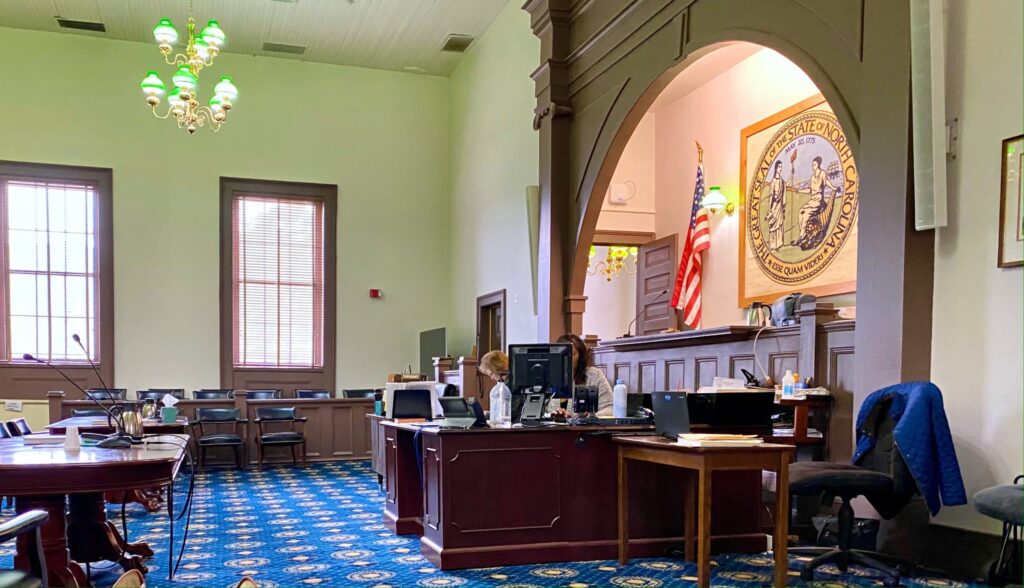 North Carolina Judicial District 29(b) is comprised of three counties and holds civil Superior Court once or twice a month. I’ve learned over the years to look forward to going to court in these smaller counties. The courthouses are typically historic landmarks and your hearing notice sends you to someplace important sounding like “Courtroom 1.” The court staff are friendly and without airs of importance and, despite sometimes having reputations for being “good old boy” or dishing out “home cooking,” as an out of town lawyer and woman, I’ve found most of them to be quite welcoming. The Polk County Courthouse in Columbus, North Carolina, met my expectations perfectly.